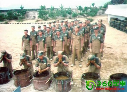 强迫韩国士兵集体用粪便水洗脸锻炼所谓“意志”