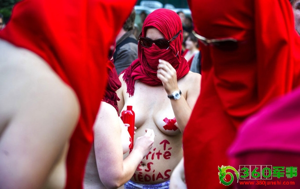 6月7日,加拿大蒙特利尔,赤裸的学生大游行,抗议学费上涨。