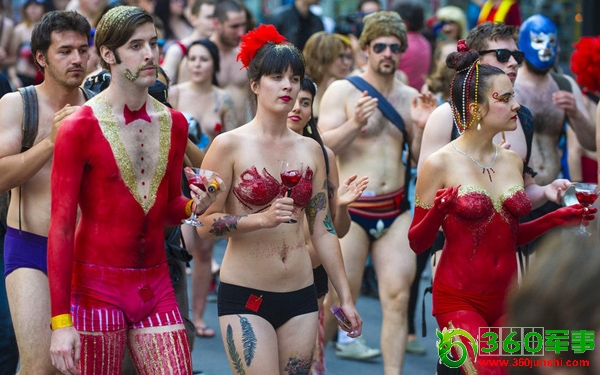 6月7日,加拿大蒙特利尔,赤裸的学生大游行,抗议学费上涨。