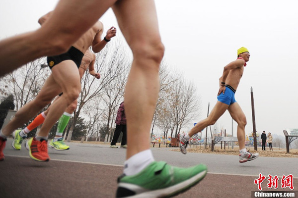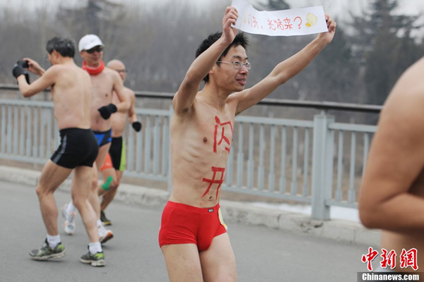 北京民众不惧重度污染参加“光猪跑”(1)(6)