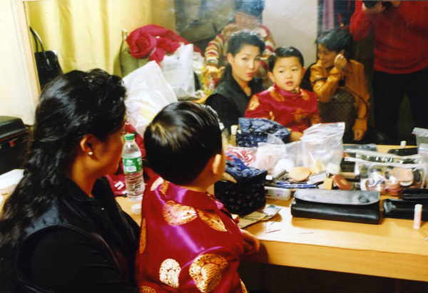 2002年1月6日,梦鸽与儿子李天一拍摄MTV。