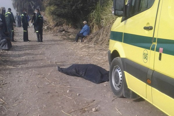 事发后,救援人员赶到现场搜救,当地官员称,热气球在卢克索的古尔纳上空,载着20名游客及一名热气球操控员,参观古庙时,在300米高空,先是着火接着发生爆炸坠落甘蔗田地。图为救援现场。