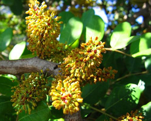 角豆树的花朵看上去很普通,但是人们还是尽可能不要在树下享用野餐。树上结的雄蕊花具有明显的精液气味,但是它的种荚却具有较高的经济价值,将其碾磨可作为人造巧克力。