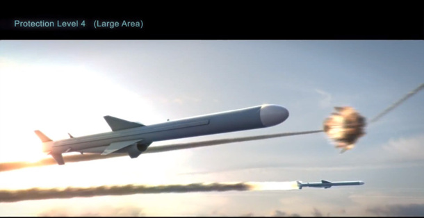 近日,美国着名军火商雷神公司公开展示其最新型舰载防卫系统宣传片。片中,雷神公司展示了多型舰载防御武器的打击能力。其中,有部分内容为假想摧毁中国C-802反舰导弹群的饱和攻击。