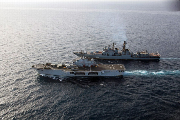 2月底,俄罗斯海军战舰与隶属于意大利海军的北约护航旗舰San Marco号两栖攻击舰在亚丁湾举行了一场名为“海洋盾牌行动”的联合反海盗演练。