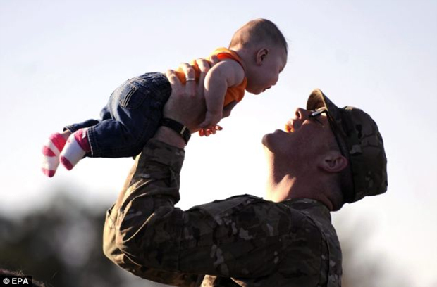 赴阿富汗美军恋恋不舍告别家人(1)(3)