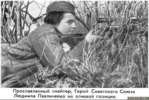 帕夫利琴科少将柳德米拉·米哈伊尔洛夫娜·帕夫利琴科:苏联英雄、海军少将。年轻时曾是一位十分漂亮的姑娘,她那天真纯洁而又充满活力的大眼睛中透露 出世人少有的坚毅。谁都很难想象,正是这样一位年轻美丽的姑娘,竟然是一名出色的狙击手——在敖德萨和塞瓦斯托波尔战役中一共击毙了309名德军,创造了 巾帼不让须眉的狙击神话。她也是在射杀人数超过300人的25名着名狙击手中的惟一一名女性。