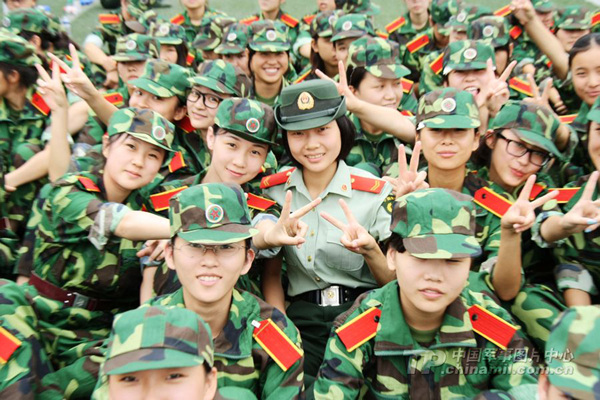 成都大学新生军训漂亮女兵当教官(1)(3)