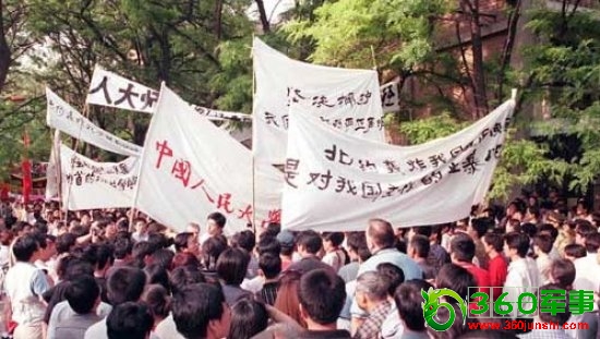 资料图:中国驻南联盟大使馆无故被美军轰炸,中国学生上街请愿